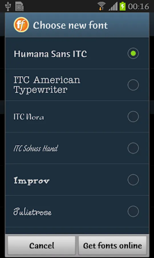 Go to Setting->Display, check if you see "Font syle" in the menu (FF icon in the font list).
