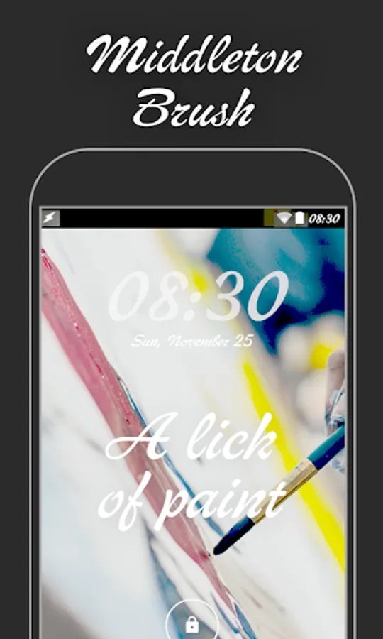 Does your device need some vintage flair? The Middleton Brush™ design provides just that. Smart and fearless—just like you—the signature curves of this font can make any message on your device stand out strong.