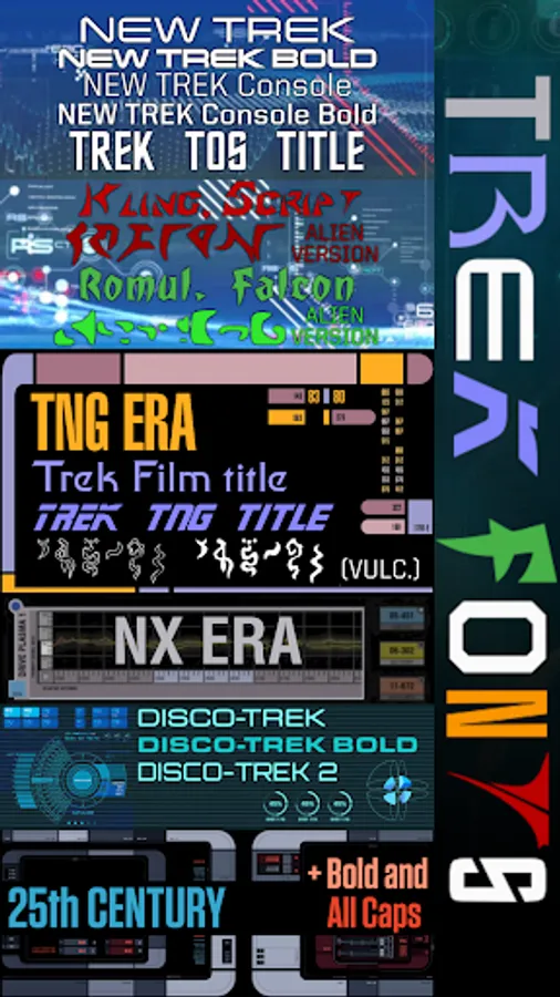 Enjoy the fonts of popular SciFi on your phone. These fonts will complete the look of the ✦ TREK ✦ themes made by NSTEnterprises. You can also use it just as is for a nicer looking text.