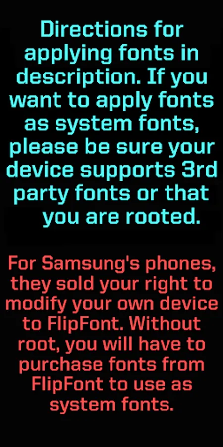 System Fonts:Some devices allow for fonts to be used as system fonts without root (know your device).