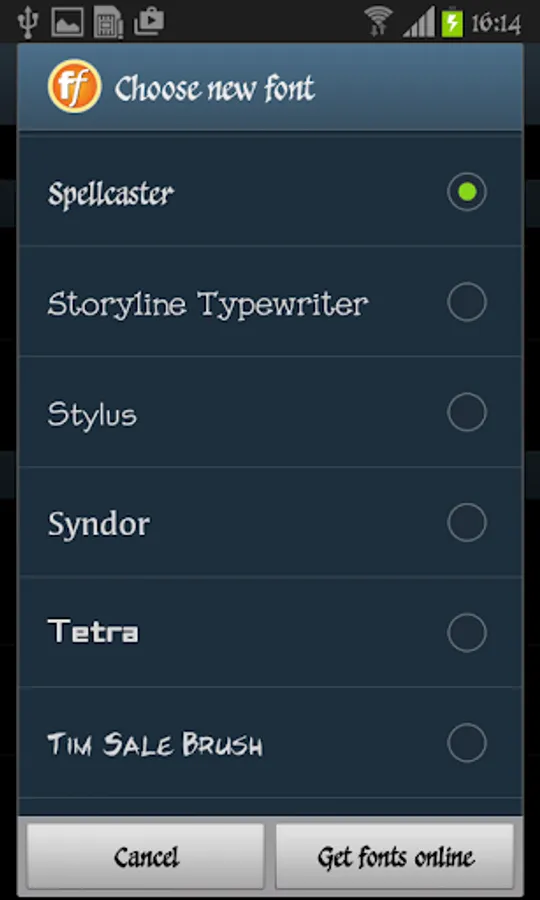 Go to Setting->Display, check if you see "Font syle" in the menu (FF icon in the font list).