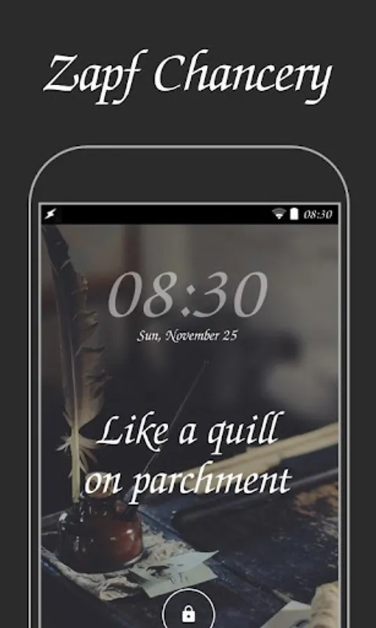Who says your smartphone can’t have class? Let the Zapf Chancery™ font add some elegance to your favorite device. Sophisticated and smooth, Zapf Chancery is the perfect accessory for your device’s ensemble.