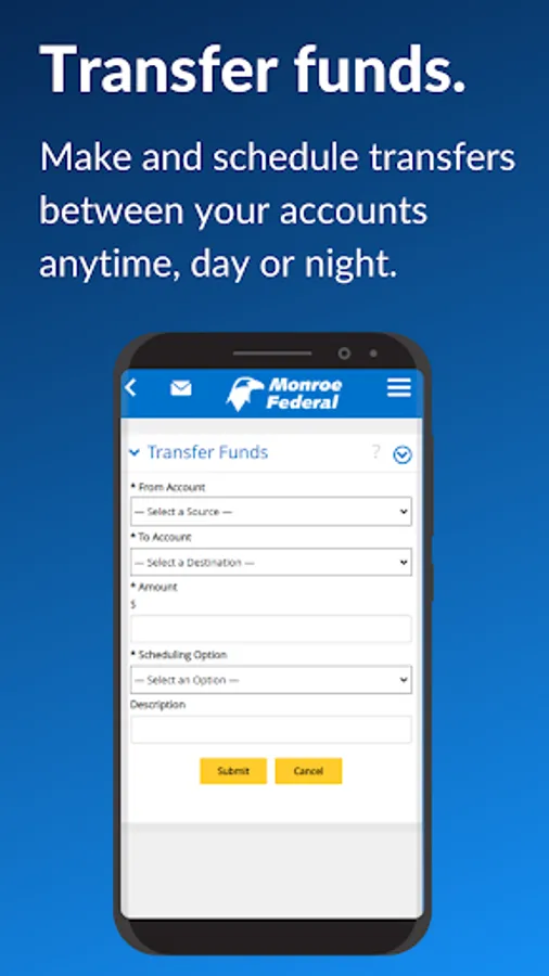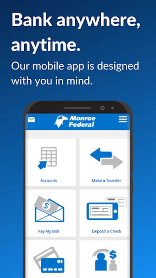 Bank whenever and wherever you are with Monroe Federal Mobile banking. Allows you to check balances, pay bills, make transfers, and deposit checks.