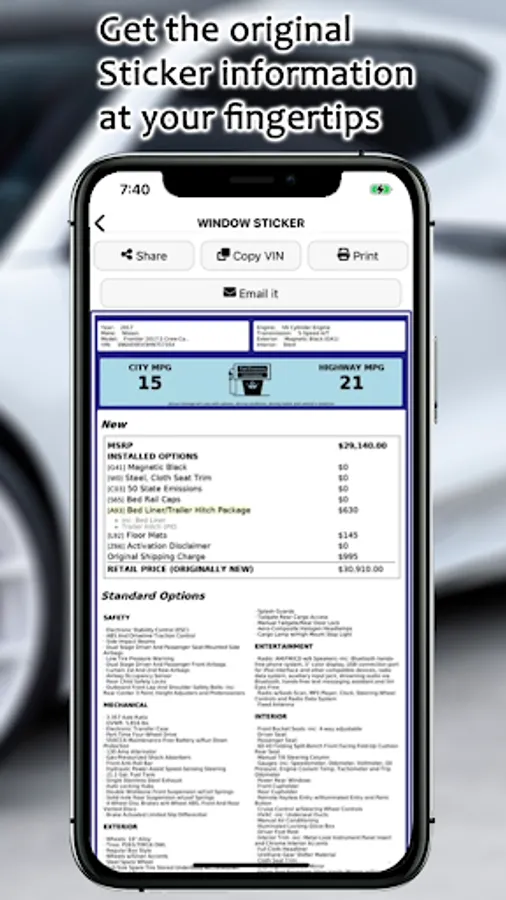70% of used cars for sale fail to describe their equipment and accessories correctly. Now there’s a quick, easy way to see a copy of the Monroney Labels. Just scan the VIN number. You’ll see the original Monroney Label window sticker for only $9.99 per vehicle.