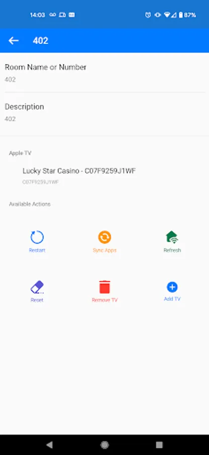 The Apple TV for Hospitality Room Control App is an easy to use, intuitive mobile app that allows Customers to directly install and manage their Apple TV devices.