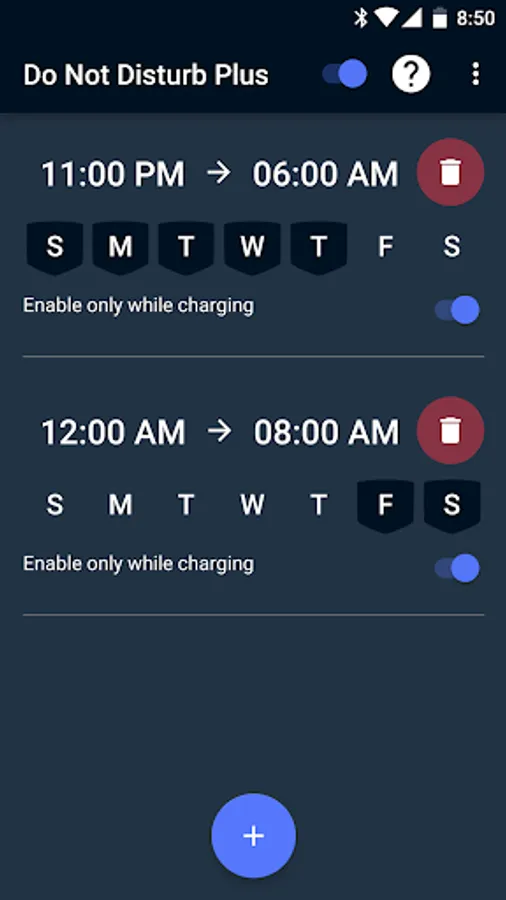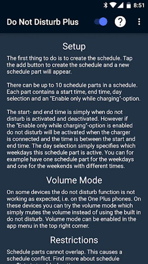 Do Not Disturb Plus will simply turn on do not disturb as scheduled by you. The setup is very simple, similar to the built-in alarm app.