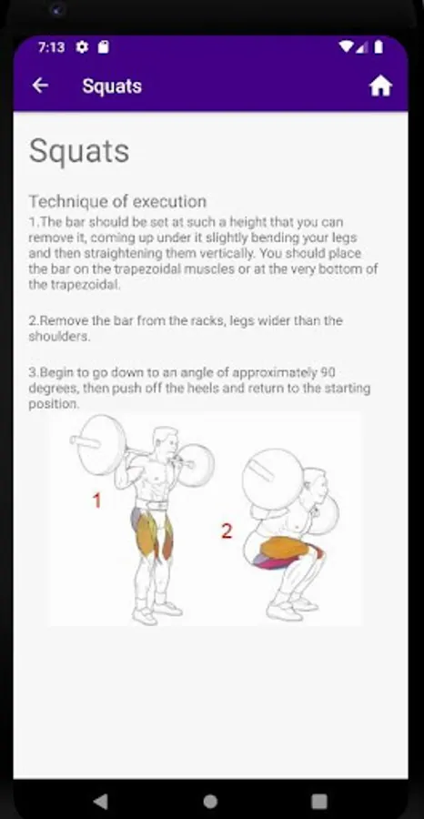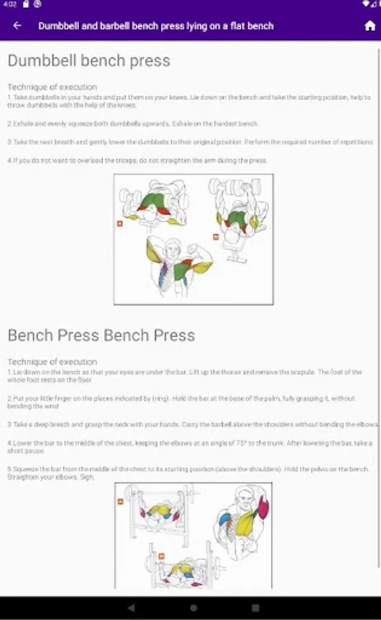 Examples of exercises with photos and descriptions of correct execution.