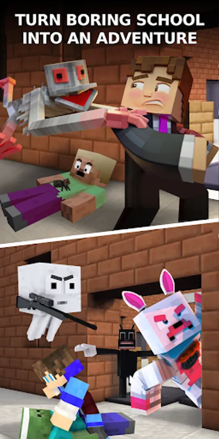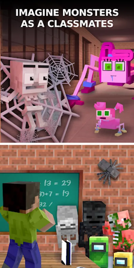 Monster School Mod for Minecraft DISCLAIMER: Ownership, intellectual property rights and any other interests belong to its publishers or owners. We respect such legal rights and interests of the publishers or owners. This app is not an official Minecraft app and is not affiliated with Mojang AB. This app uses assets and brands correctly in accordance with the guidelines described at https://account.mojang.com/documents/brand_guidelines