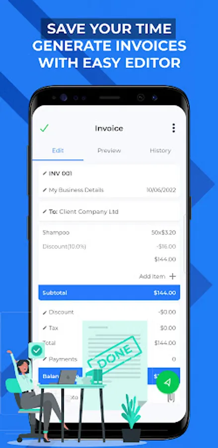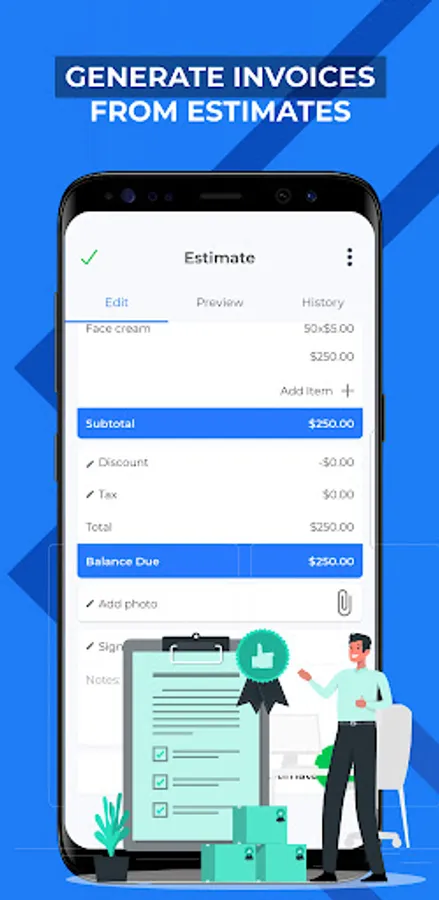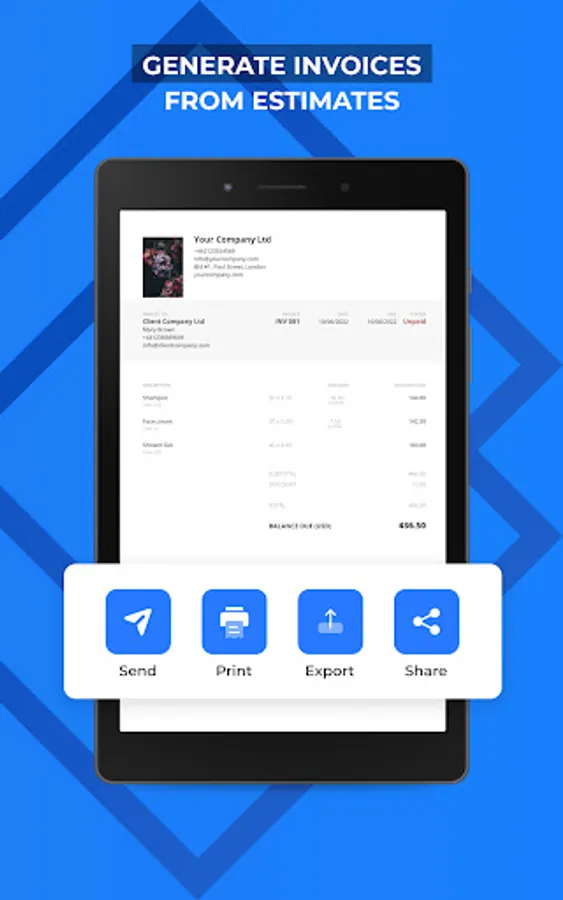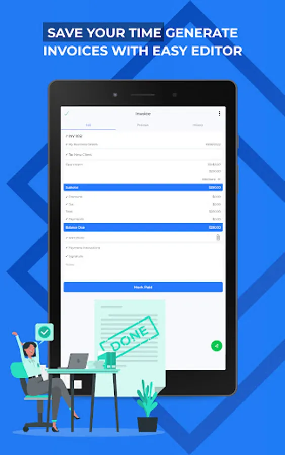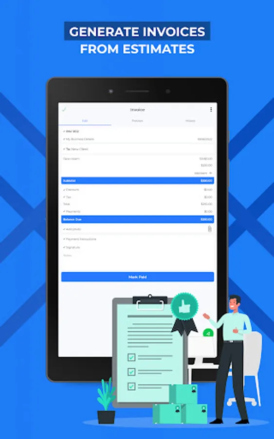 • Use built-in PDF invoice maker to create PDF invoices & estimates;