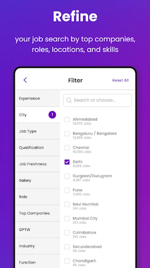 The app helps you browse and filter jobs by location, industry, function, skill, & roles. Your preferences will now take center-stage in your career. We even understand & cater to your preferences for walk-in jobs, internships, contract jobs, part-time jobs, freelance, and work-from-home jobs, etc.