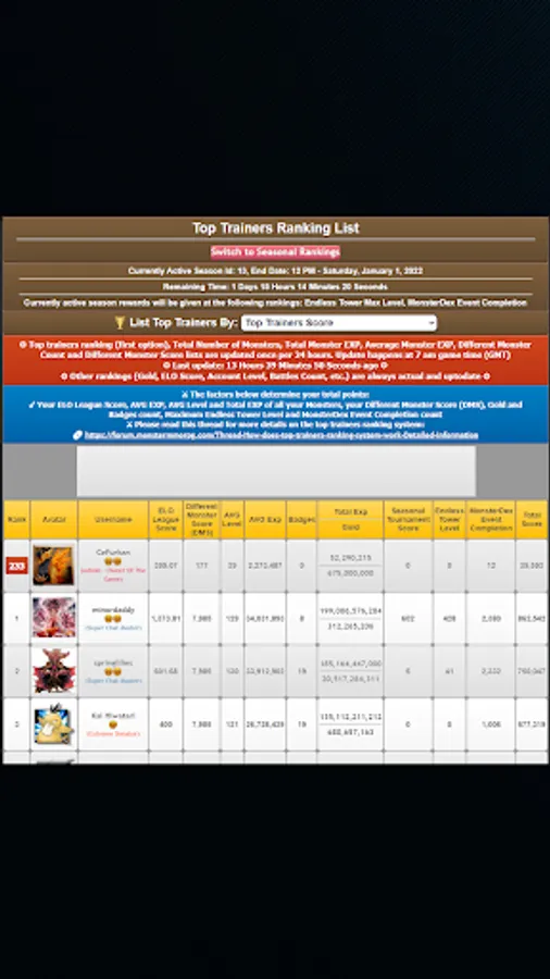 -> Logically-designed top Trainers ranking system that prevents players from abusing statistics to increase their rank.