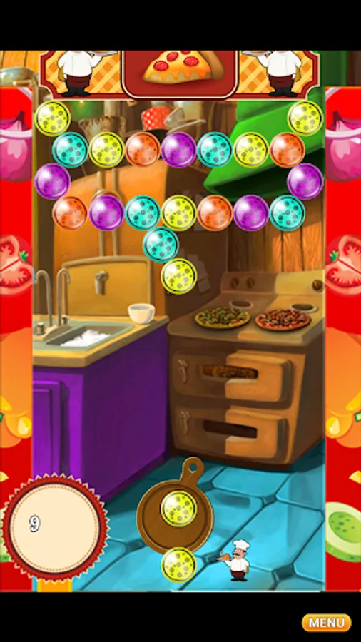 Pizza Bubble Shooter is an original appetizer builder of a new delicious type of interactive fun shooting game! This Pizza title is a special because while it's themed with an Italian kitchen made for preparing tasty pizza it's in fact a unique bubble shooting game designed solely for the purpose of helping you, the player, to pass the time in the most enjoyable way, without spending a nickel. It does not matter what country you are from or how old you are as this game will accompany you at all times providing you with the missing entertainment addition in life that you need and crave for.