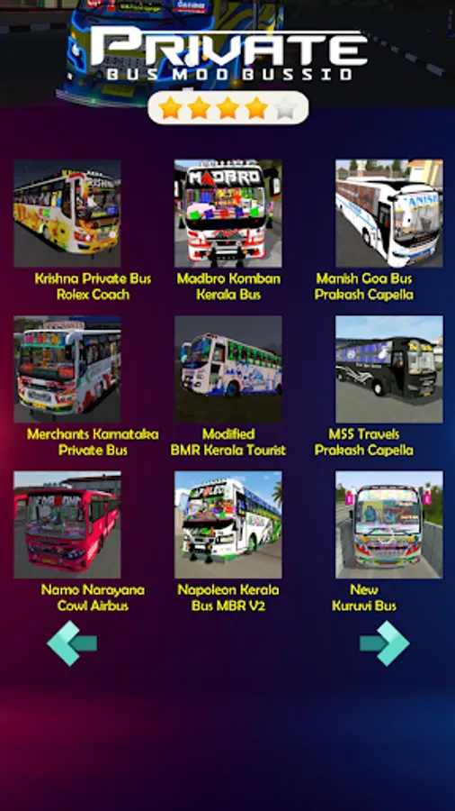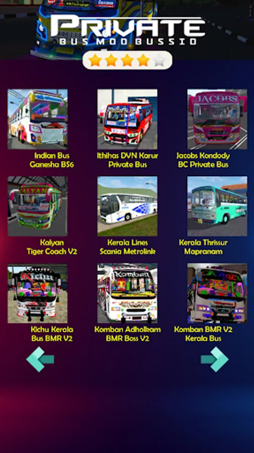 This application has everything you need to enjoy playing the kerala private bus mod bus. This application is one of the most complete Indonesian bus simulator private bus mod apps on bussid. Dozens of the newest and coolest mod bussid kerala private buses you can find here. Cool mods like the bussid bus mod ganesha with its epic design and also full variation amvj bus mods are in this application. We also added private bus traffic to complete your bussid collection.