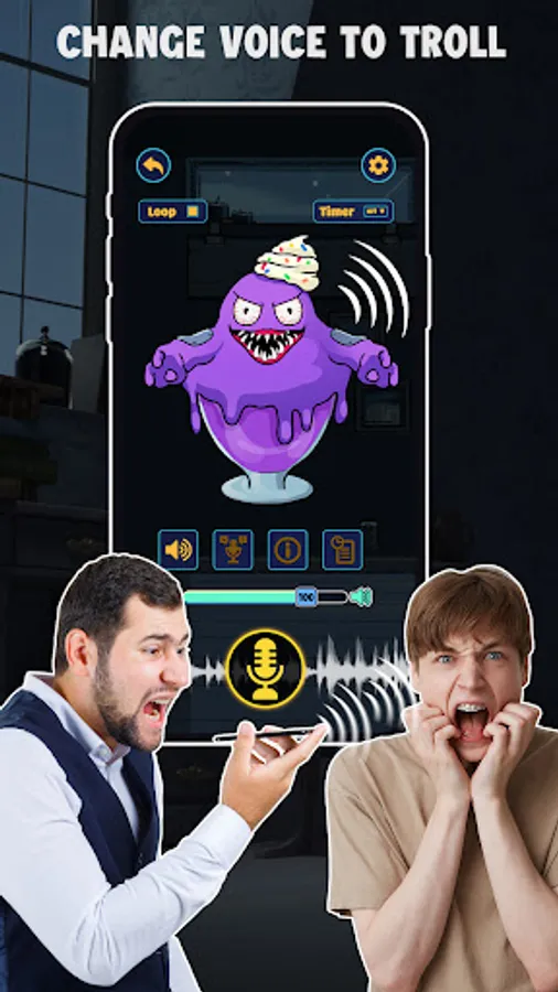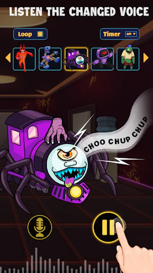 Engage by selecting your favorite voice changer, tapping the screen to produce haunting creature sound changer sounds. Brace yourself to experience spine-chilling yet comical sound effect filling your space, igniting laughter and scary sounds.