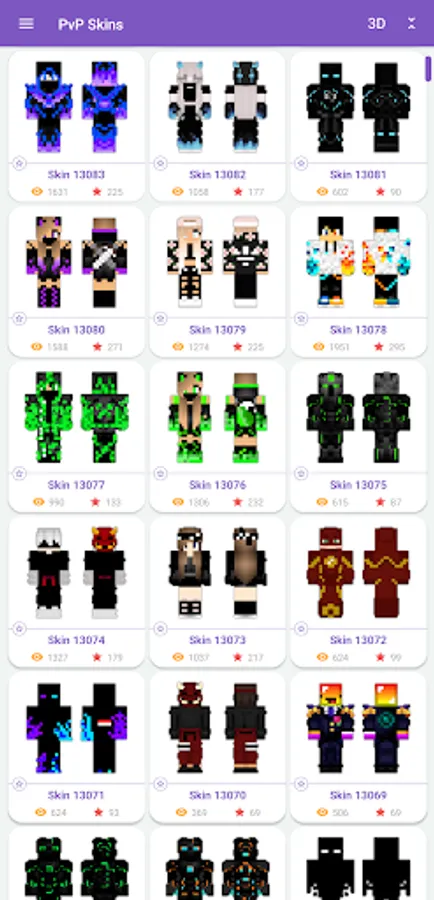 Look at more than 12,000 PvP skins for Minecraft PE in this app.