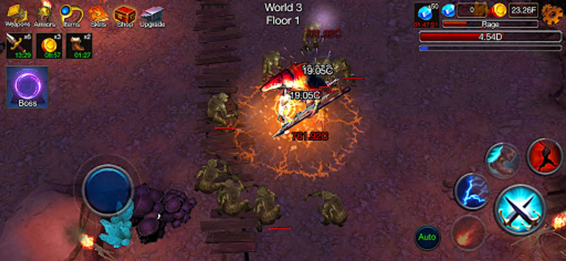 - RPG : Improve your hero stats, upgrade your warrior weapons, skills and items