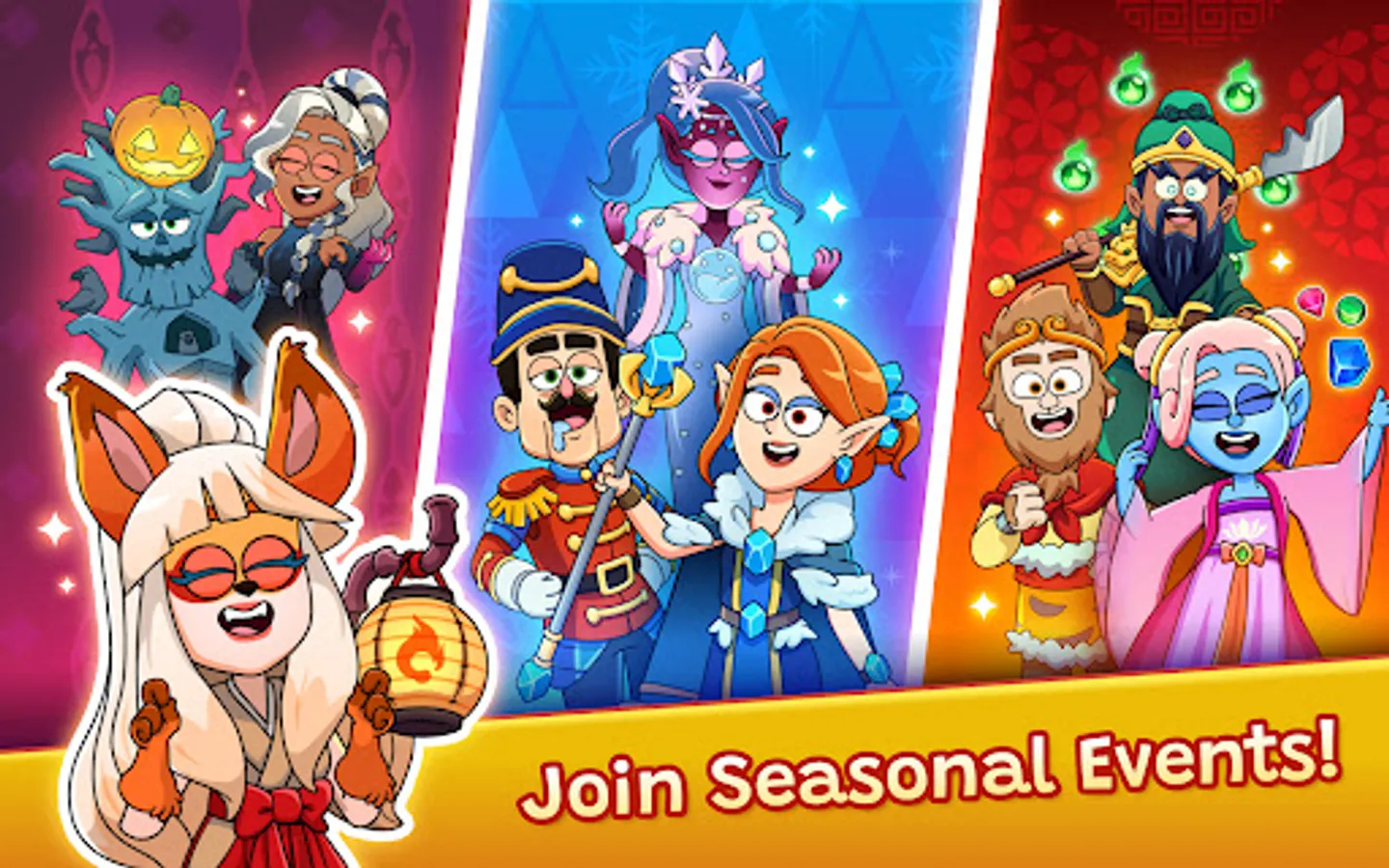 🧟♂️Join limited time events to collect fun skins, outfits, and costumes like Monkey King Nobu, Snow Queen Aeon, Franken G’larg, Space Princess Lisbeth, and The Incredible Dusk