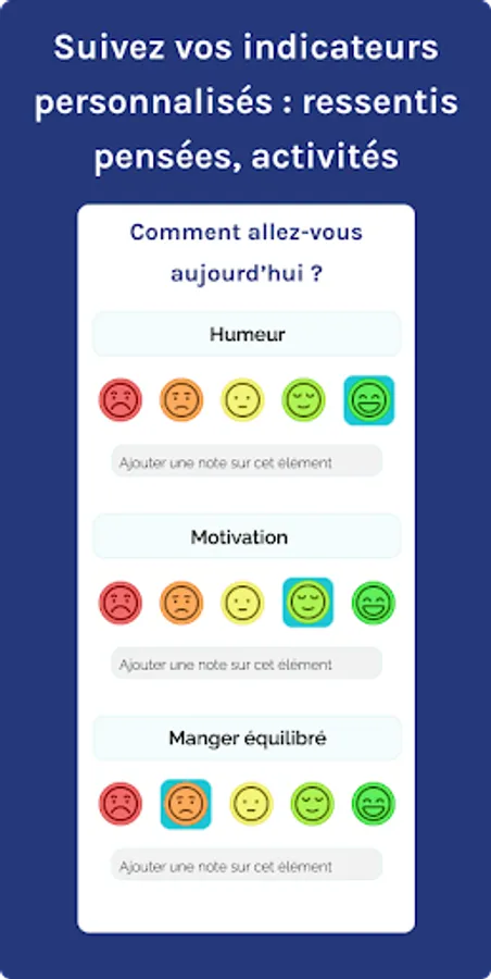 Thanks to the personal notes, fill in all the events and all the thoughts of your day. In addition to being a personal diary, it can help me understand if a particular event influences the fact that I am not well. If this is not the case, regularly filling in the personal notes will allow you to identify other causes, sometimes more discreet, which can nevertheless have a strong influence on your well-being (low morale, anxiety attack, attack of panic).