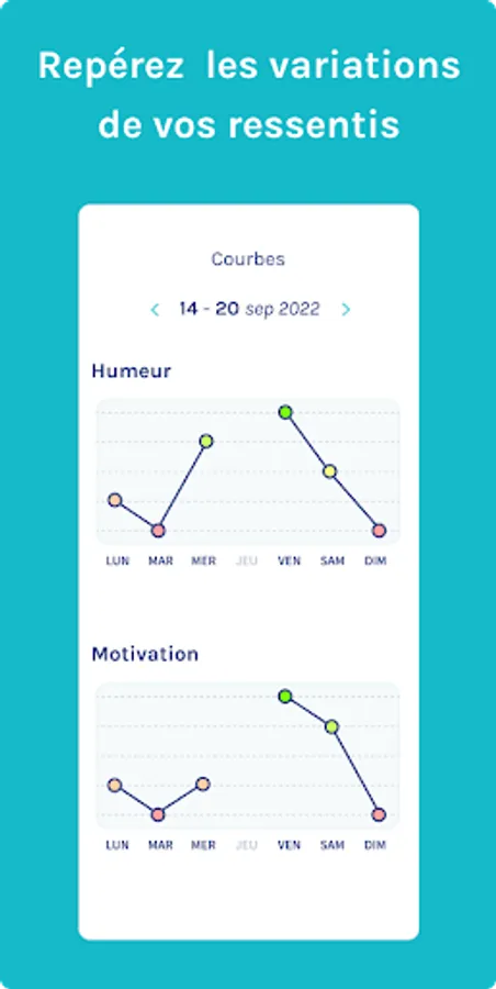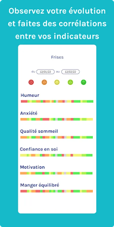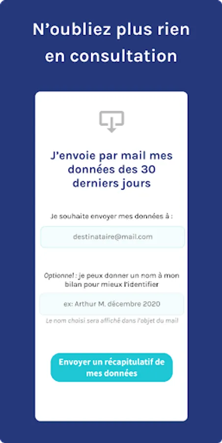 Thanks to a daily questionnaire which asks you to evaluate personalized indicators of your mental health (symptoms, feelings, behavior or thoughts), to note the highlights of your day, or to enter your treatment intake, you will not forget no more important information to relate during consultations with the actors of your psychic care pathway (psychiatrist, psychologist, psychotherapist, nurse, peer-helper, specialized educator, etc.).