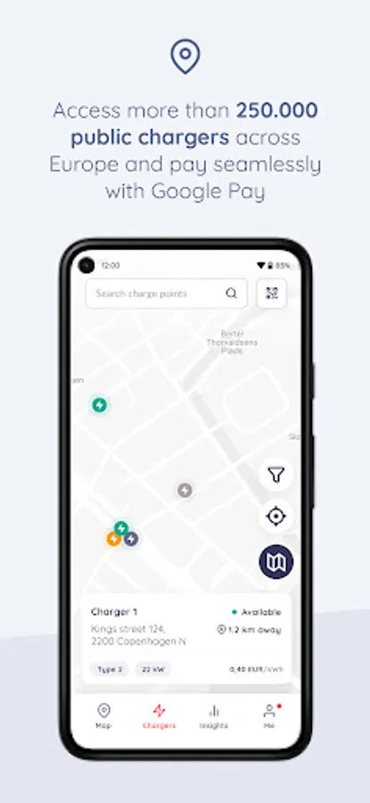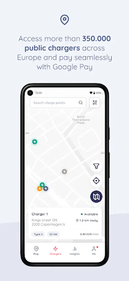 - Choose from multiple payment methods: Apple Pay, Google Pay, Credit and Debit Cards, Monta Wallet, Charge Key (RFID Card), MobilePay, Vipps, etc.
