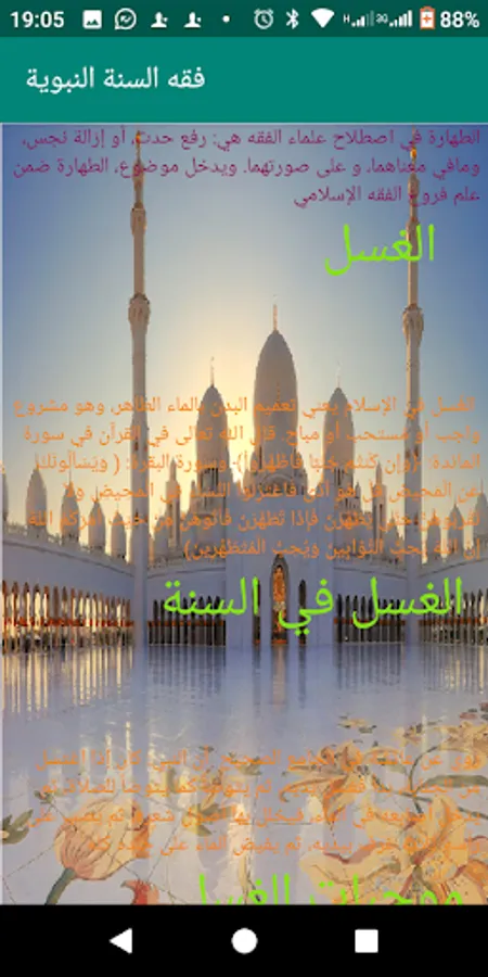 فقه السنة النبوية هو تطبيق تعليمي به كل ما يحتاجه المسلم من تعاليم اسلامية و نذكر على سبيل المثال: