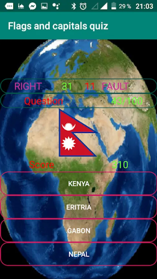 You will also learn details like capitals, flags while guessing a flag or a country, every quiz game.