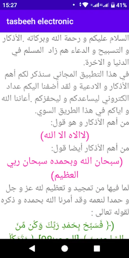 Electronic tasbeeh or digital counter is a free application that you can call the rosary accompanied by tips for the dhikr that must be said in support of Quranic verses