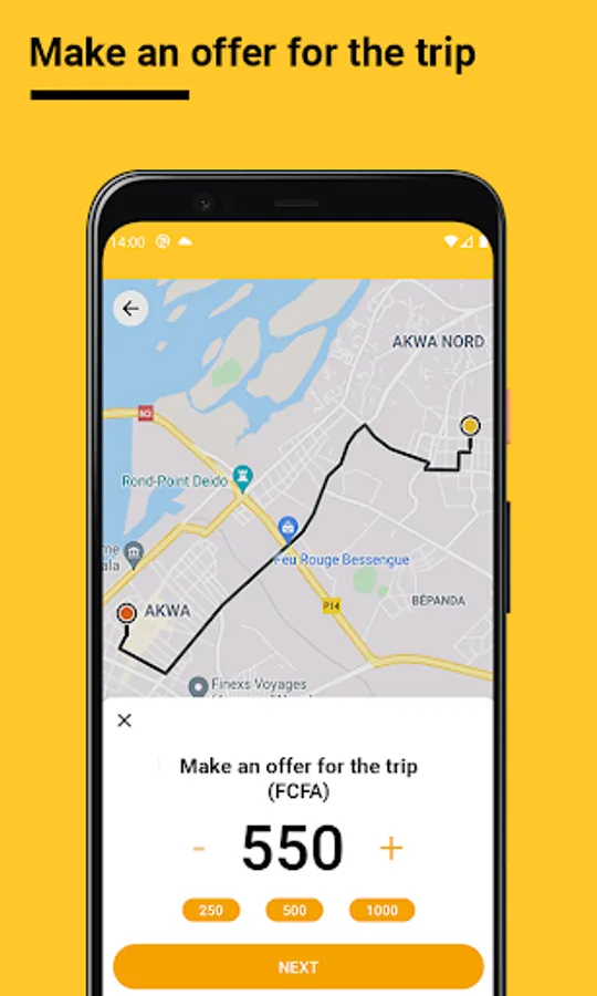 When you order a vehicle on the MonTaxi application the fare is not imposed on you, you choose it from 250 FCFA! A real boost to your purchasing power!