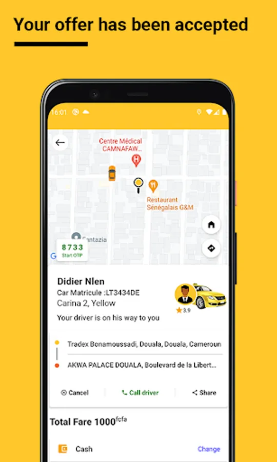 Order a cab instantly 24/24 wherever you are in Yaoundé or Douala!