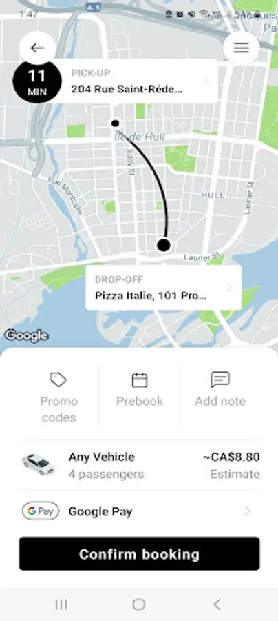 • Enter your destination address (this allows us to provide an estimated fare amount)