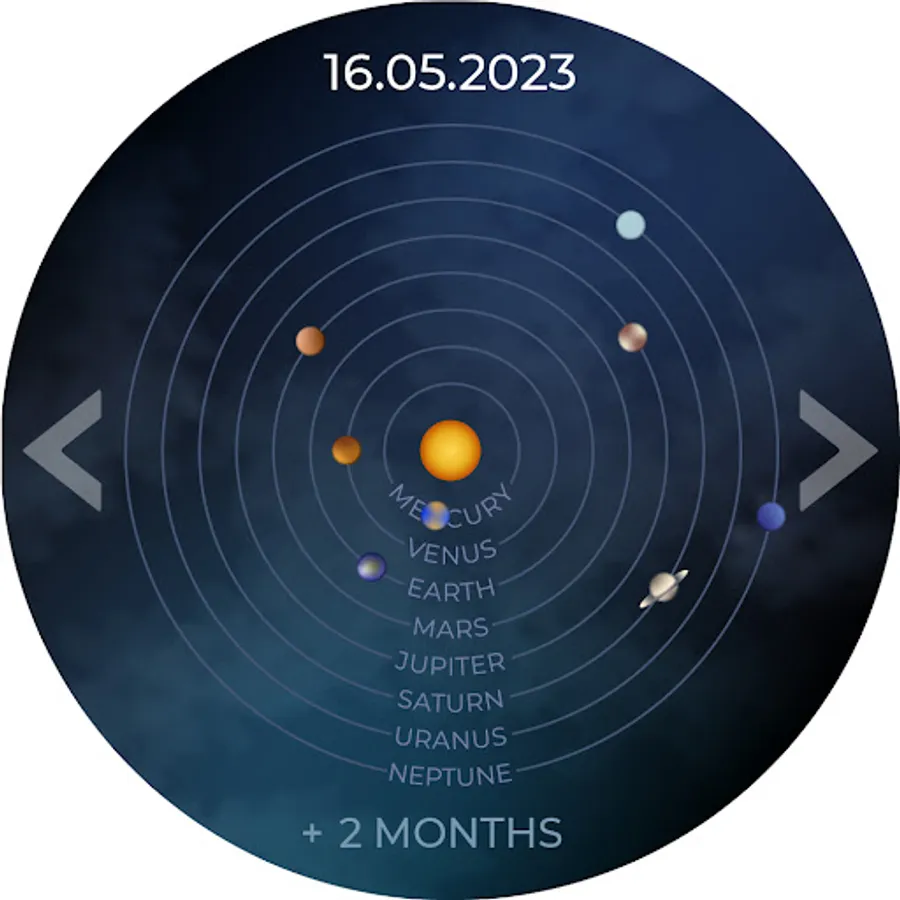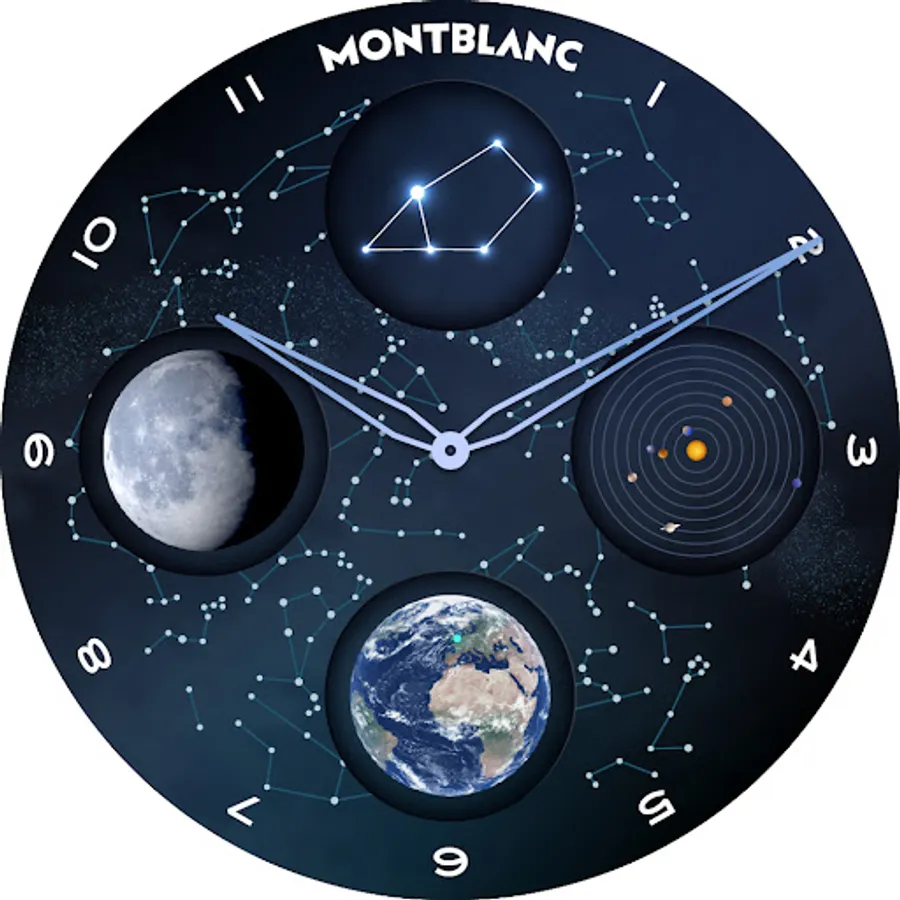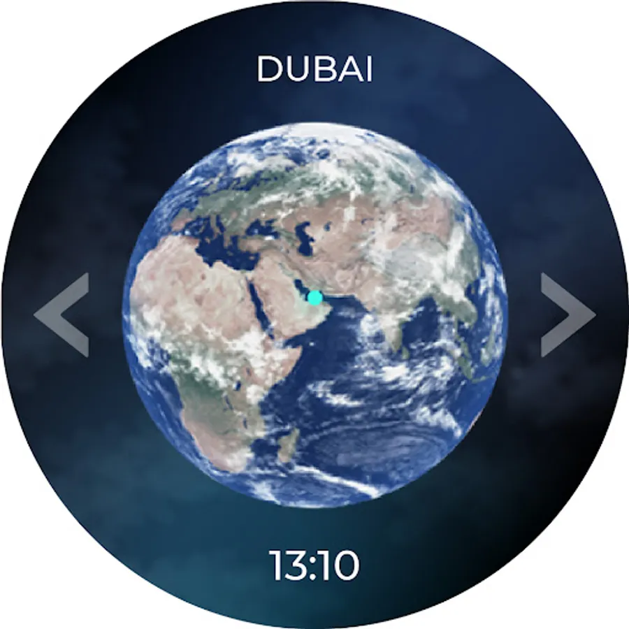 The Celestial watch face is a compendium of the various facets of the universe, allowing the user to explore the Earth and beyond, and to travel through space and time.