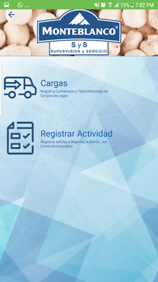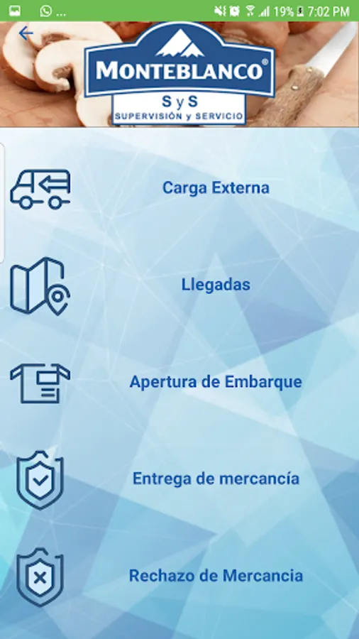 Control application for the logistics and promotion team of Champiñones Monteblanco.