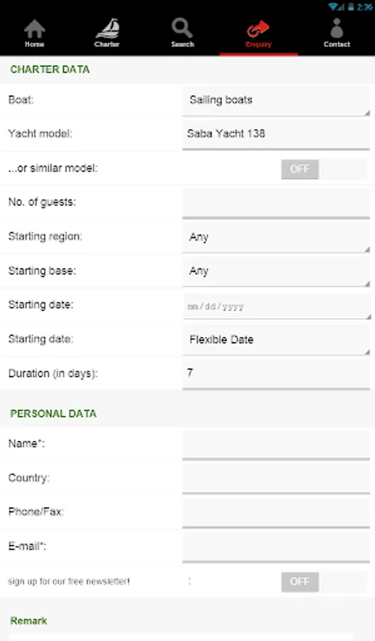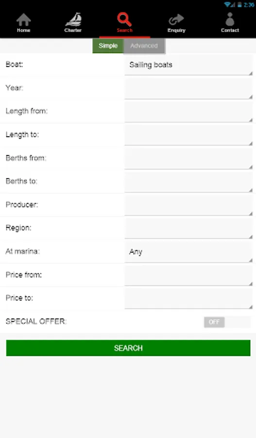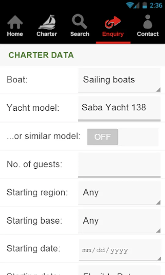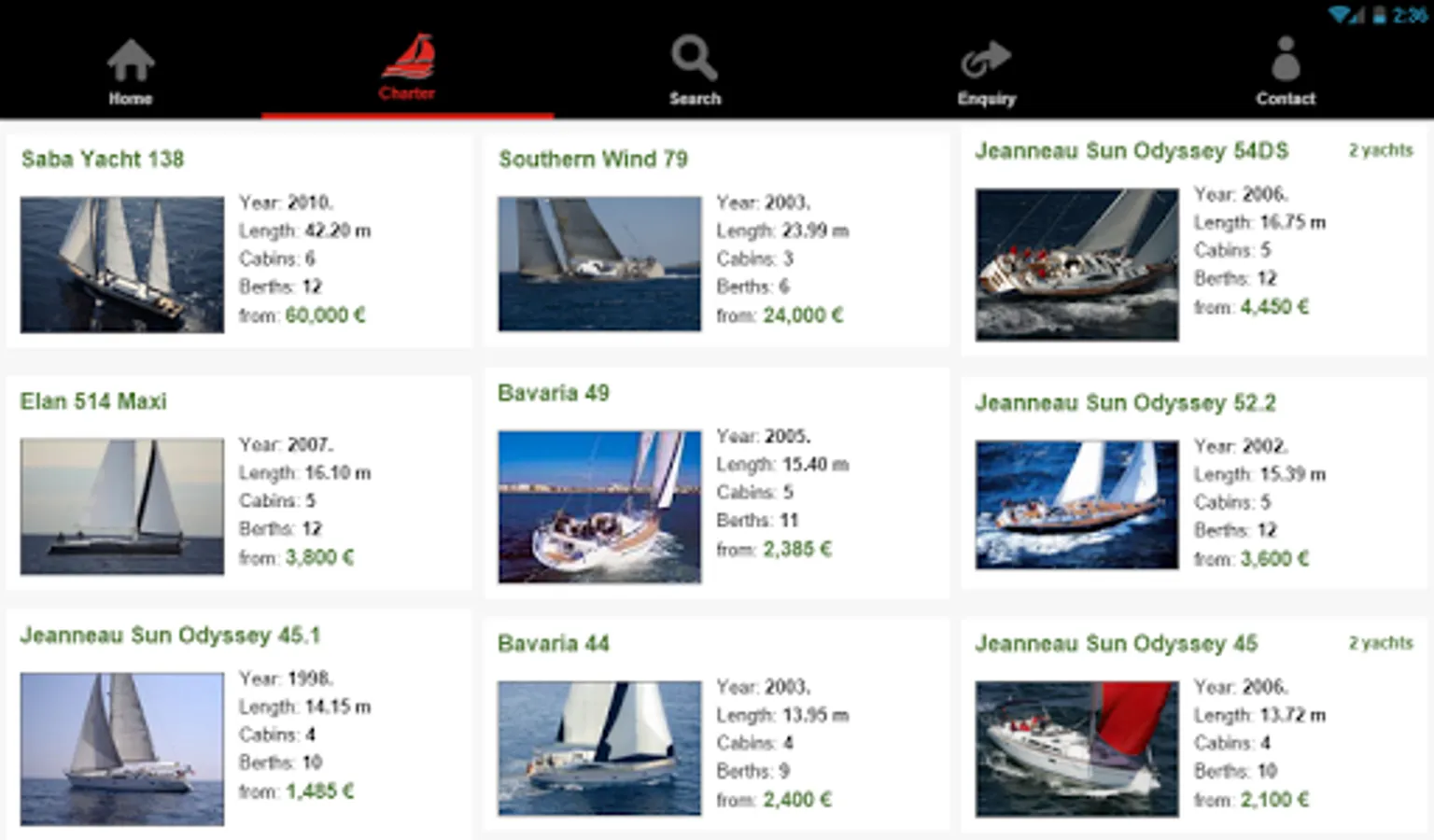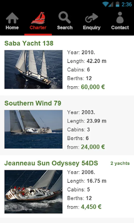 - Detailed yacht info (gallery, inventory list and technical specification, rental prices specified per periods)