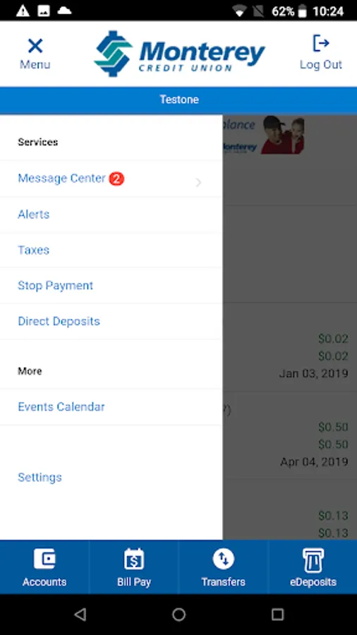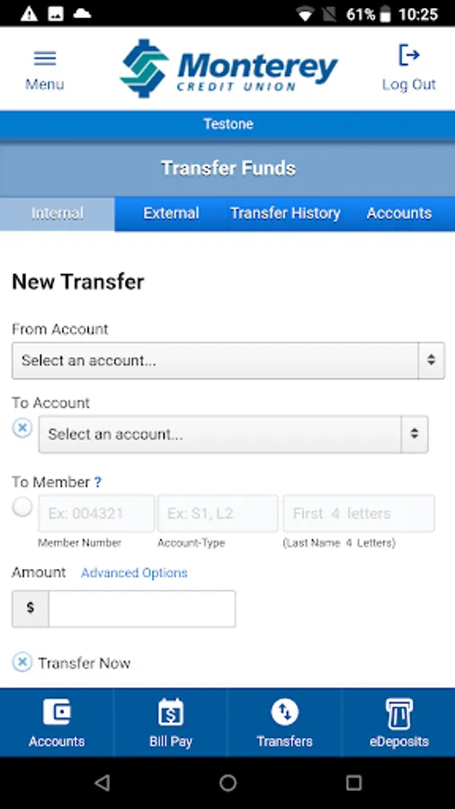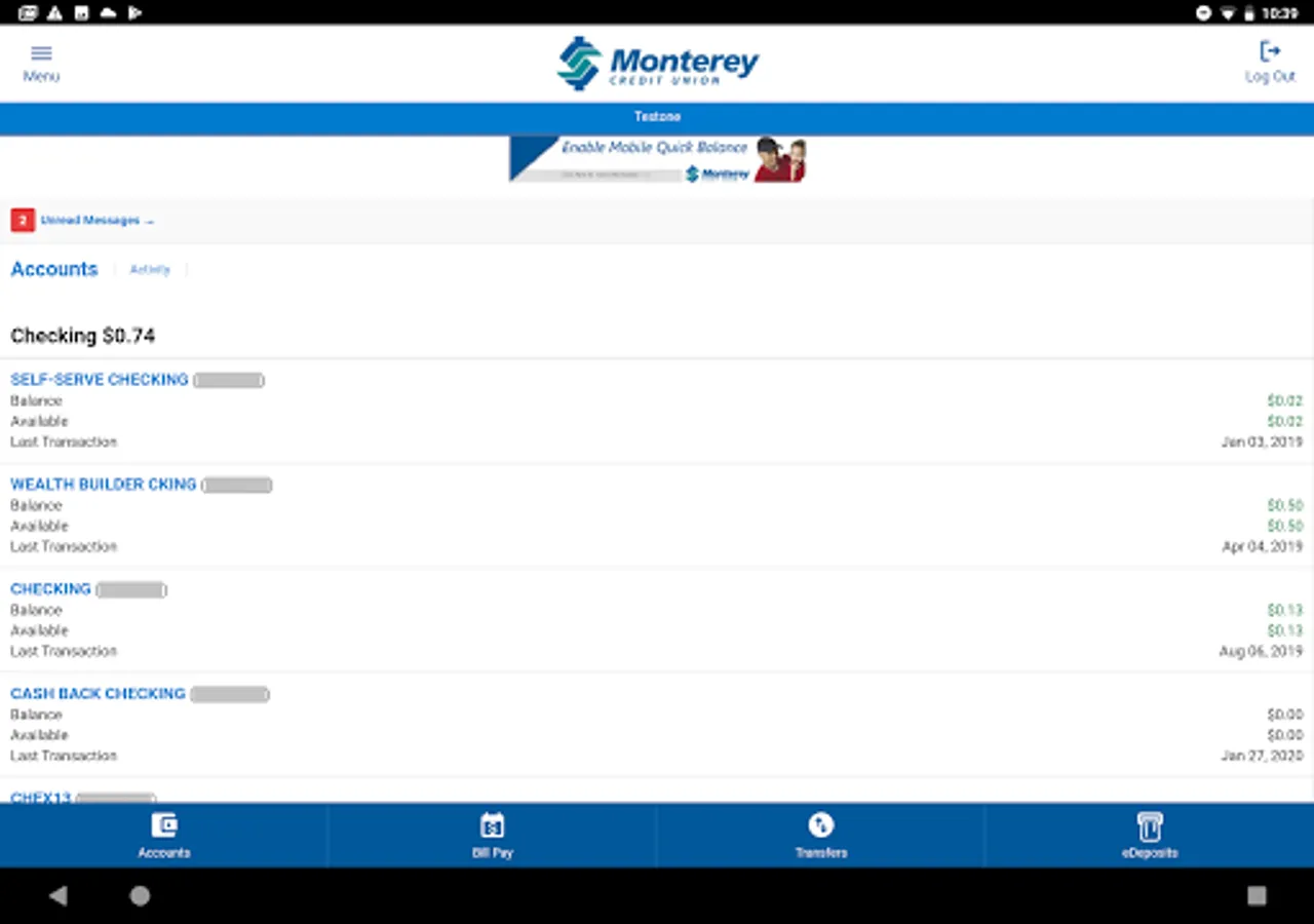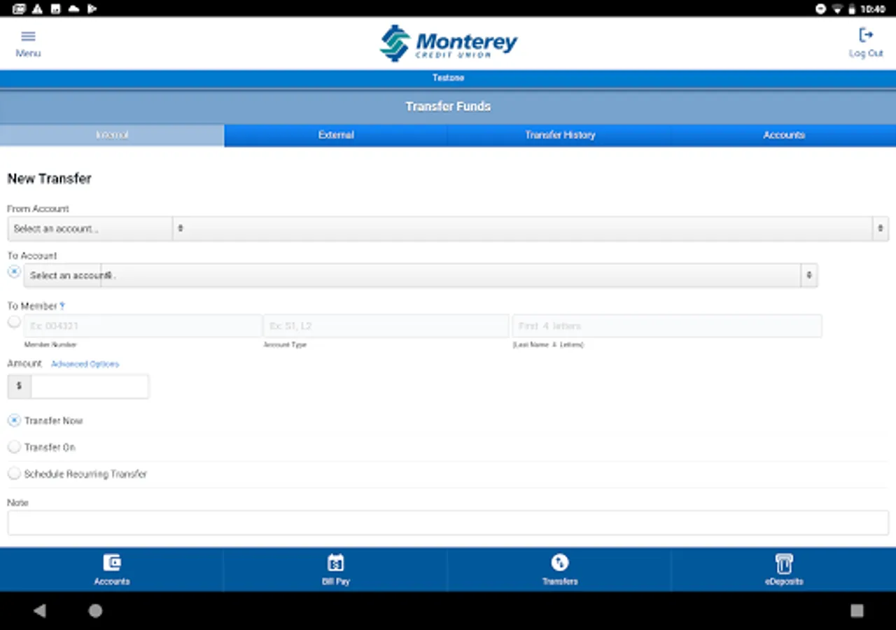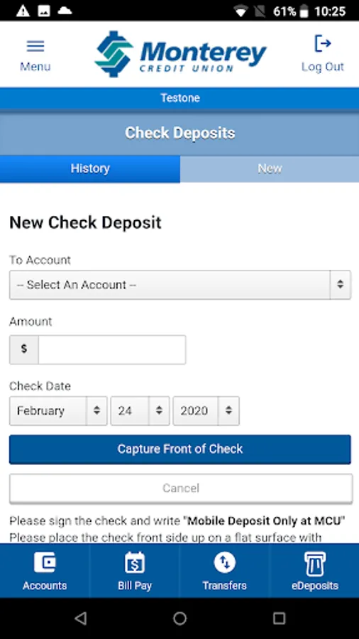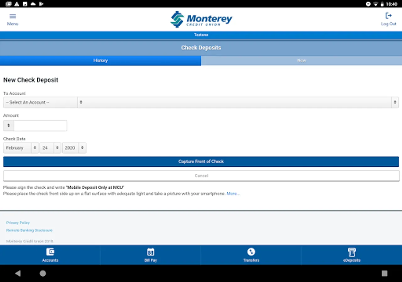 Monterey CU Mobile Banking allows you to check balances, view transaction history, transfer funds, pay bills and deposit checks on the go!