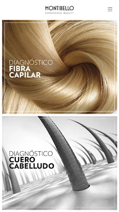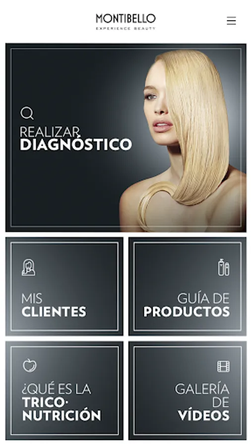 It presents the new TRICHO · TEST application, the ultimate tool to become an expert Montibello Trico · Nutritionist. Only one finger you can offer Trico · Nutritional complete diagnostics and specific nutritional needs of each type of hair and scalp solutions.