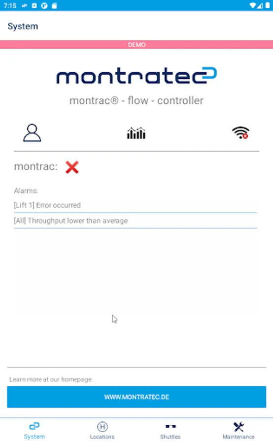 With MFC-Mobile as a source of information for your modular montrac® system, you get an overview of: