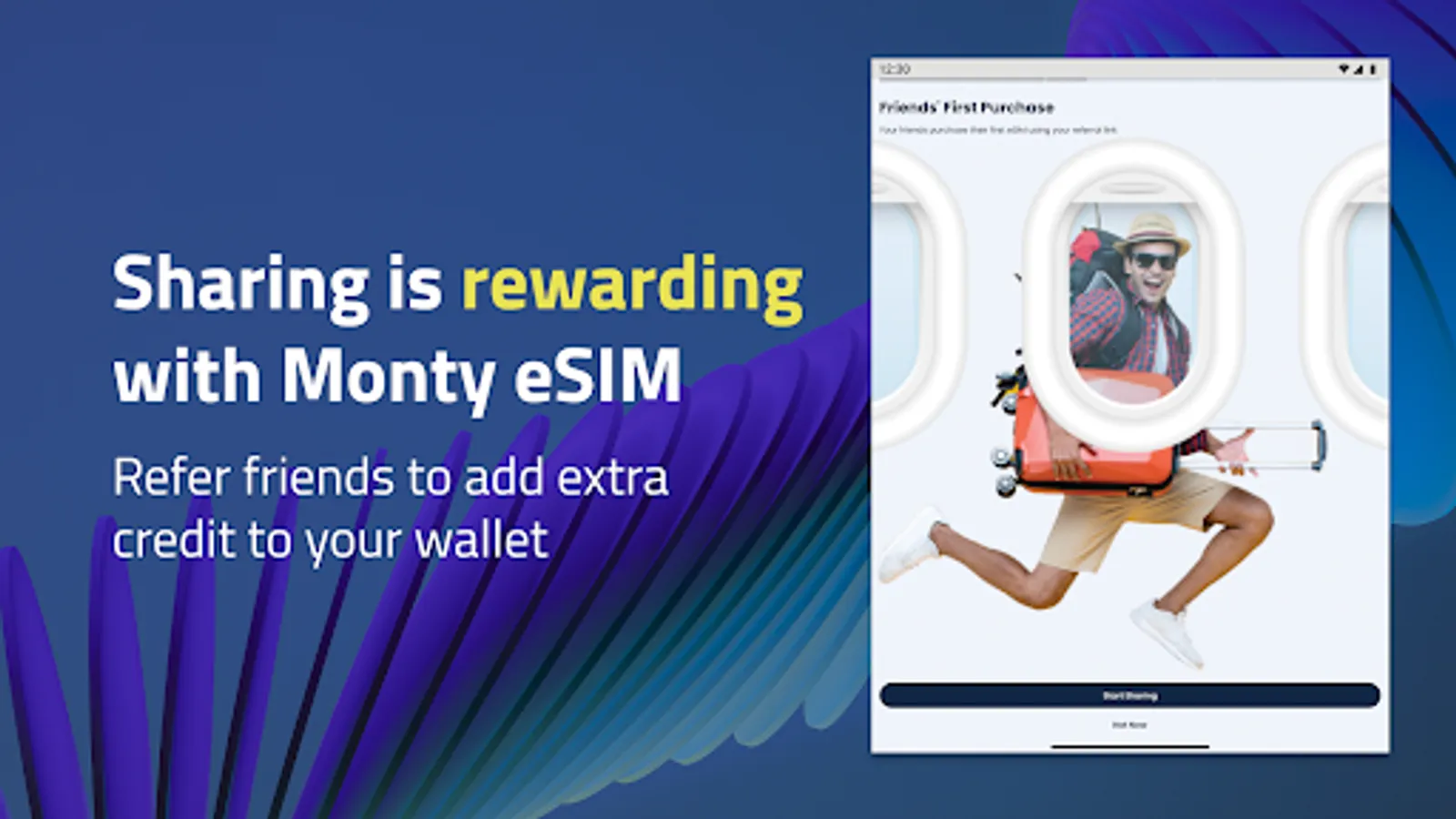 • Save time: No need to search for a Wi-Fi network or a local mobile data provider when using a 3G and 4G+ internet package from the Monty eSIM App
