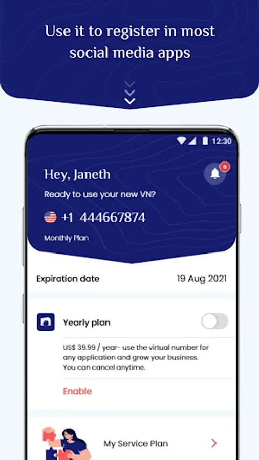 • Numberry subscriptions are based on monthly and yearly plans, allowing you to link the purchased number on any of the social apps listed above for the duration selected.