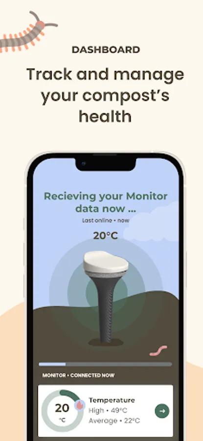 Monty Mobile connects over Bluetooth to your Monitor to create a world-first monitoring system that makes composting easy and efficient. Your decomposition data is uploaded to our analysis model which generates custom, real-time management instructions to optimise your composting.