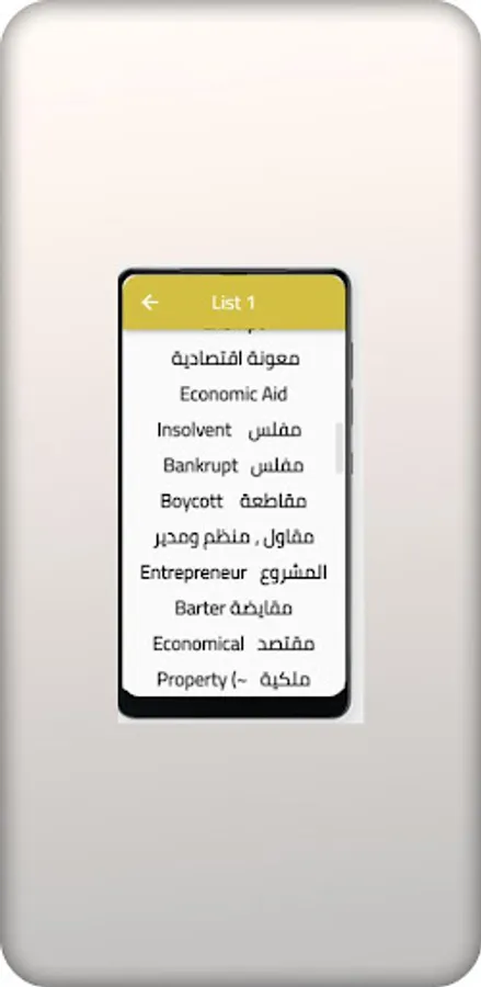 The application contains more than 100 words used in the economic and commercial fields that translators need in translating texts that contain economic terms.