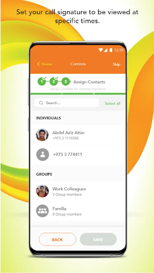 Call Signature empowers you to customize your callers’ phone screens by a message of your choice when you call them or receive a call from them.