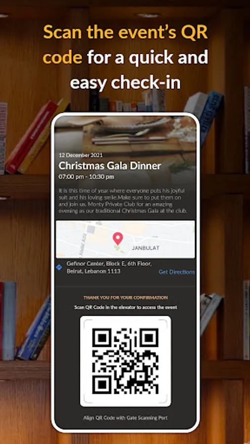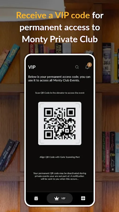 Guests invited to an event at the Club receive a QR code via the app, scan the code using the QR code scanner found in the elevator of the Club’s premises, and gain access to the Club.