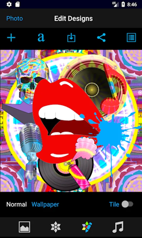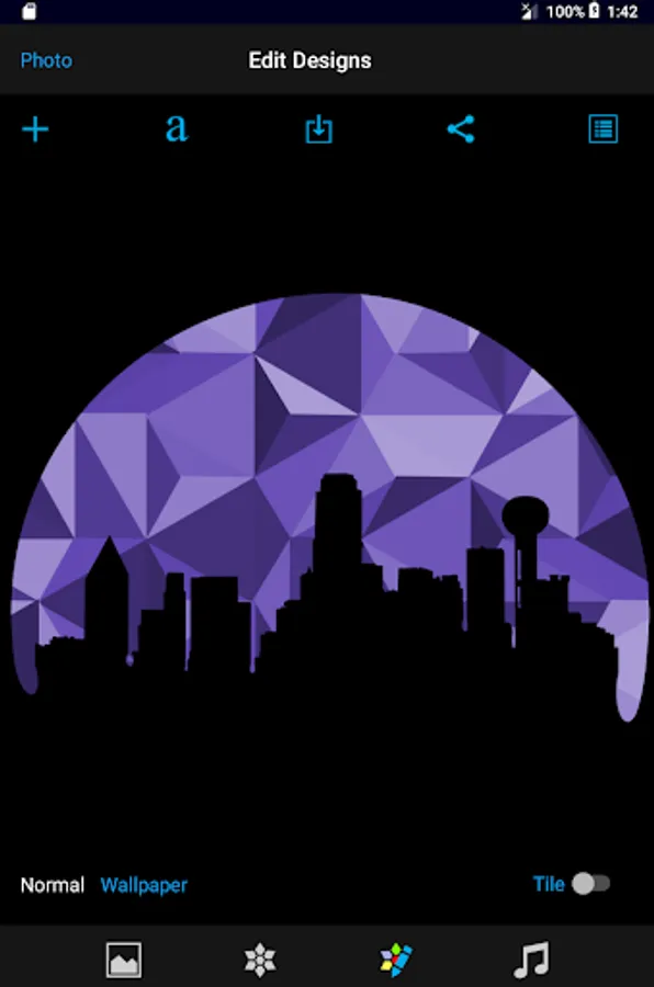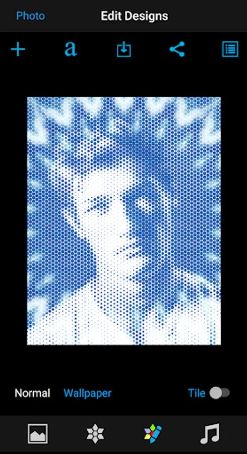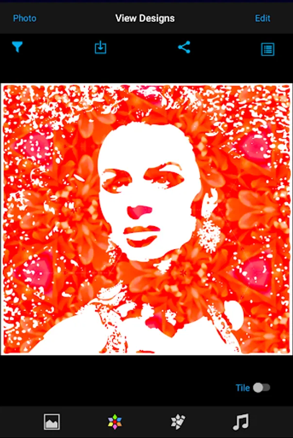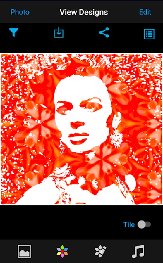 - Share, save, tile the design and change design properties