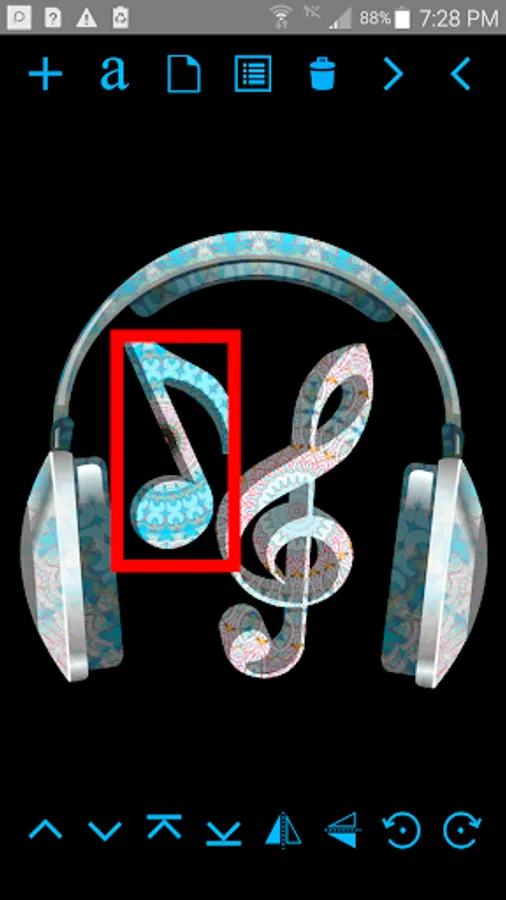 * Touch the "up" and "down icon to move the shape one order up or down.