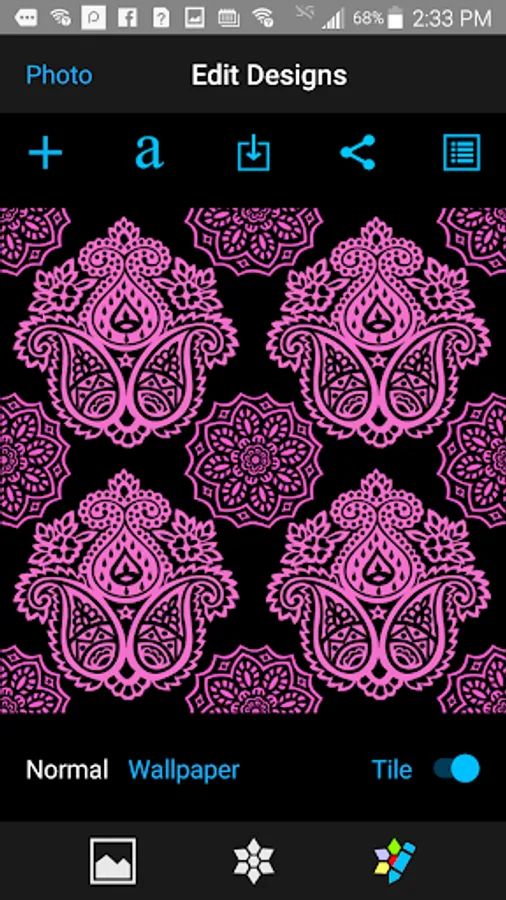 - Toggle the tile switch to tile the design