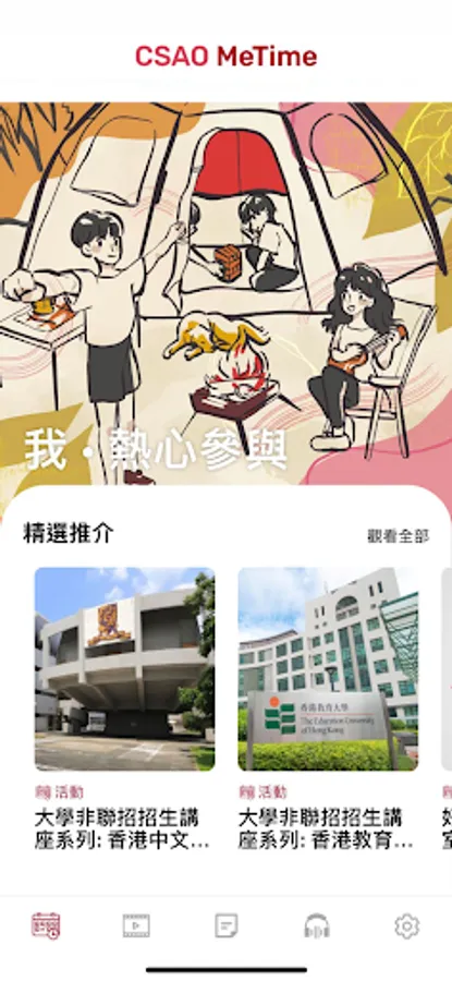MeTime is a mobile application developed by the Student Affairs Office (CSAO) of the School of Professional and Continuing Education of The Hong Kong Polytechnic University. As a PolyU HKCC or PolyU SPEED student, you can use a series of self-care exercises and materials in MeTime, which are divided into categories by recordings, articles and videos, so that you can learn to accept and treat yourself well, in the fast-paced life and the hustle and bustle environment , to find peace and joy.