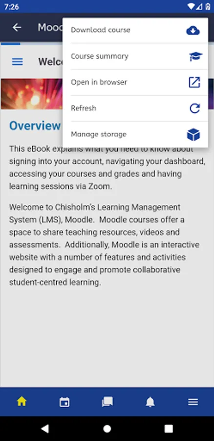 Powered by Moodle Mobile, MyChisholm is also your go-to for your course and units, assignment updates and messages. You can view your grades and results, and quickly find resources to support your study, including library access and IT help.
