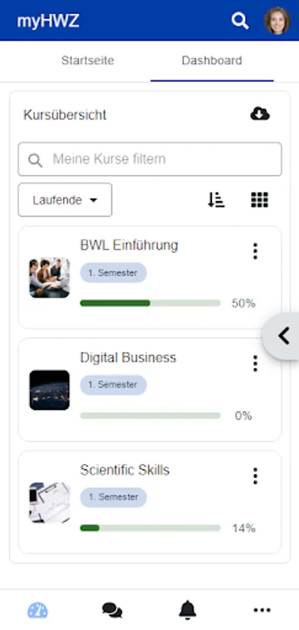 The myHWZ app brings the central teaching and learning platform of the HWZ University of Applied Sciences Zurich to your mobile phone (also offline).