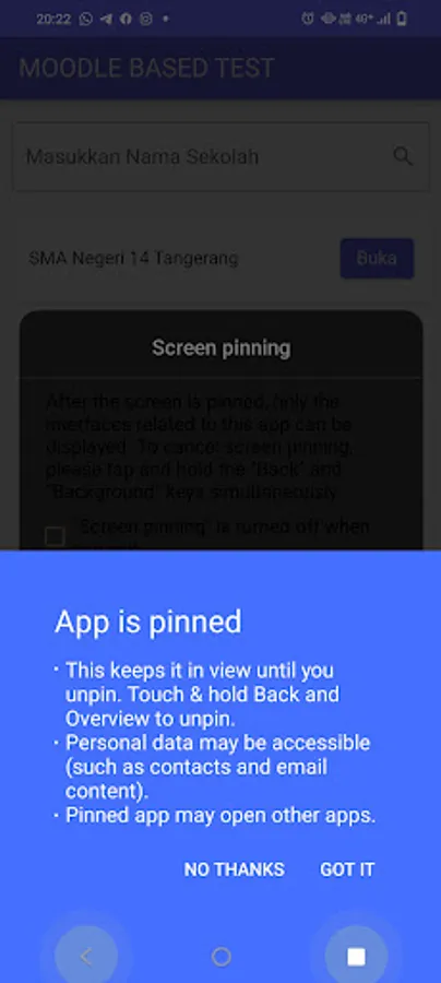 An application that runs in Kiosk mode, to be used by students to answer questions on the Moodle LMS. While using this application, students cannot open other applications or open new tabs.