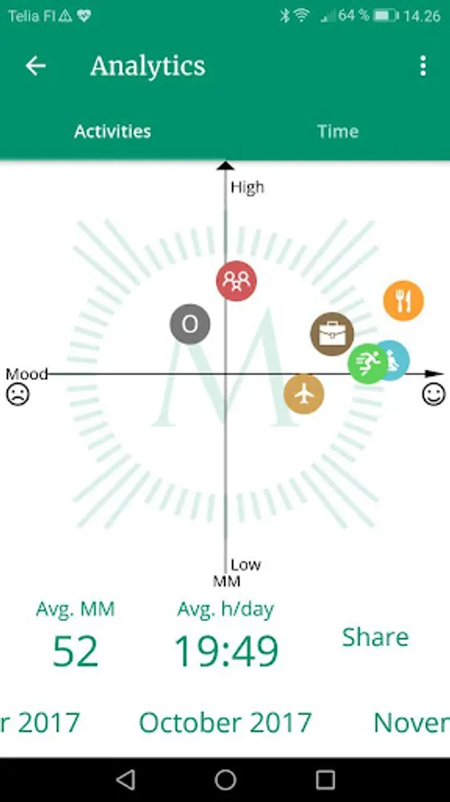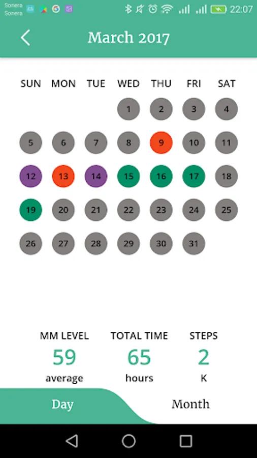 Analytics is a combined view of each calendar month. Both the Diary items and Daily stress values are shown as in an effective and visual presentation.